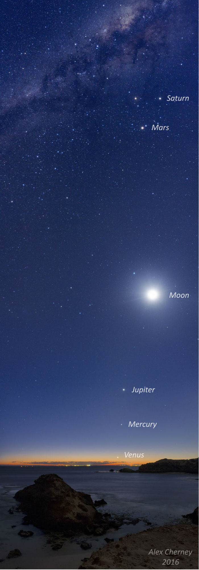 মহাকাশ গবেষক জেফরি হান্ট সংবাদমাধ্যম সিনেটকে জানিয়েছেন, উজ্জ্বল নক্ষত্রের মতো বুধ, মঙ্গল, শনি ও বৃহস্পতি গ্রহকে দেখা যাবে সূর্য ওঠার ঘণ্টা খানেক আগে৷ বুধকে দেখা যাবে উত্তর-উত্তরপশ্চিম দিকে, দক্ষিণ-পূর্বে দেখা যাবে মঙ্গল গ্রহকে ও দক্ষিণ-পশ্চিমে দেখা যাবে বৃহস্পতি ও শনি গ্রহকে৷