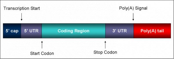 DNA থেকে ট্রান্সক্রিপশনের মাধ্যমে mRNA সৃষ্টি হয়। mRna লম্বা চেইনের মতো। এর ৫’ প্রান্তের কয়েকটি বেস কোডনবিহীন, এ প্রান্তকে ৫’ লিডার বলে। আবার ৩’ প্রান্তের কয়েকটি বেস কোডনবিহীন, এ প্রান্তকে ৩’-ট্রেইলার বলে।